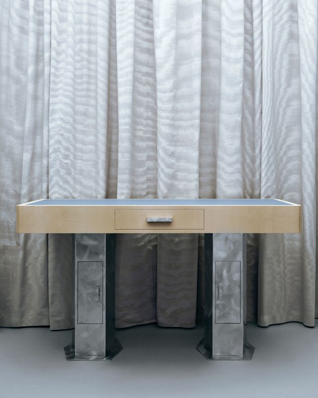Autour du lit, une série de pièces énigmatiques donne corps à une vision intime de l'habitat. Rangements dissimulés, alcôves, surfaces mates et reflets métalliques construisent une narration silencieuse. "J'ai voulu qu'on ressente un peu de moi à travers ces objets", confie-t-elle. Plus qu'un simple ensemble, '2093' est une chambre d'échos, où le passé et l'avenir, le sensible et le formel, le doux et le radical se répondent.