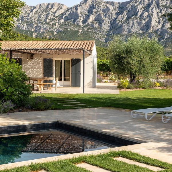 Au pied de la montagne de Cézanne au beau milieu des vignes, le jardin de la maison MiP semble toujours avoir fait partie du décor. Pour créer cette sensation, le concepteur paysagiste Christophe Naudier du collectif Créateurs d'intérieur s'est appuyé sur le terrain d'origine, plat autour de la maison, vallonné face au paysage, transformant ce champ en un véritable Jardin d'Eden. L'idée de créer plusieurs espaces de vie aux ambiances variées pour profiter d'une multitude de points de vue s'est alors rapidement immiscée dans l'esprit du concepteur paysagiste. Si un coin détente se dessine sur le côté de la maison face à l'immensité de la Sainte-Victoire, la piscine mise en scène au centre du jardin profite elle, d'un paysage toscan magnifié par les cyprès et les oliviers. "On peut être en groupe ou s'isoler. Cet extérieur correspond à tous les profils", confie Chritophe Naudier. Après un an de travail, le champ de cette maison aux accents du Sud s'est métamorphosé en un paradis provençal raffiné, où il est bon de venir s'évader quelques jours...