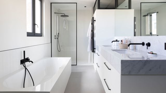 En suivant cette idée, les décisions à prendre sur les matériaux sont primordiales. "Il y a des choix à faire pour équilibrer le prix !, conseille Mély Areia. Sur la faïence, par exemple, selon les carreaux choisis, la pose est plus ou moins technique. Certains produits vont s'installer plus rapidement et plus facilement. À noter que plus la pose est rapide, moins elle est coûteuse. Les panneaux muraux vont demander moins de temps et donc moins de main d'oeuvre, tout en pouvant se poser directement sur les carreaux, sans dépose. Ce sont des solutions qui peuventfaire baisser le budget." Comme un équilibre à trouver, le projet demande une réflexion en amont. Hélène Paoli préconise ainsi de prévoir une seule grande vasque au lieu d'en installer deux petites qui nécessitent deux réseaux de plomberie, deux vasques, deux mitigeurs, etc. Avec un budget serré, on peut aussi s'amuser avec des carreaux blancs 10 x 10 cm et imaginer une pose en diagonale. En somme, se faire plaisir en détournant un produit simple et peu coûteux ! Privilégier certains matériaux durables est néanmoins intéressant pour conserver longtemps une salle de bains en bon état. Une baignoire en fonte ou des sanitaires en céramique, le prix n'est pas toujours plus élevé mais la qualité pérenne.